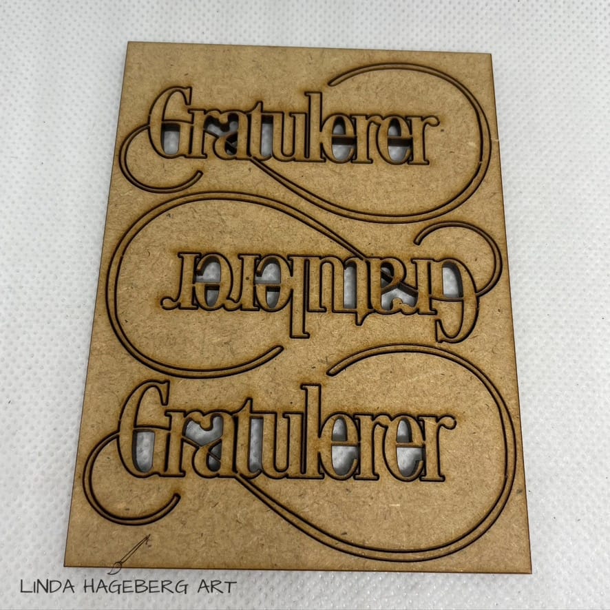 Plate med 3 Gratulerer tekster i HDF med font. Disse produktene kan brukes som dekorasjon til feks kort, album og mixed media.